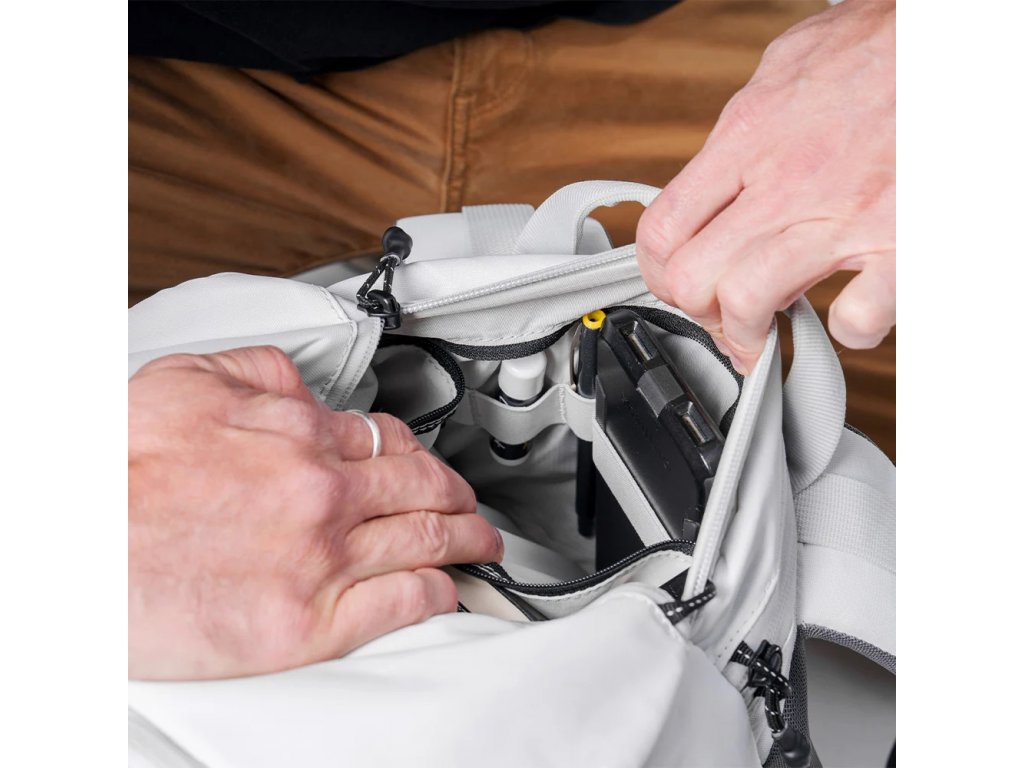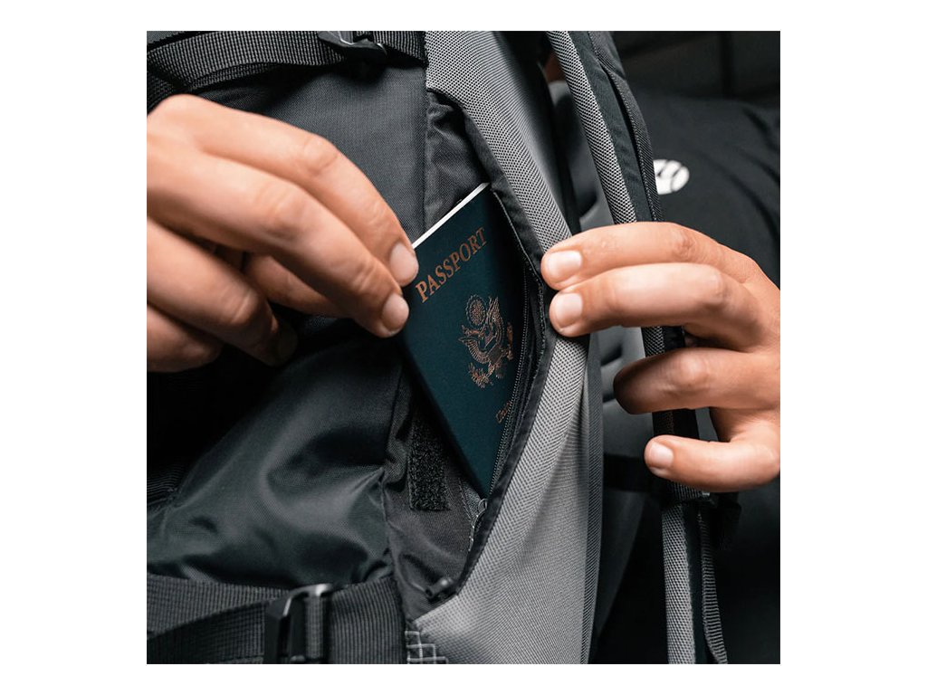 Majte často používané predmety ľahko dostupné v hornom prístupovom administračnom vrecku. Ochráňte svoj pas, hotovosť a ďalšie dôležité dokumenty v skrytom vrecku za zadným panelom.