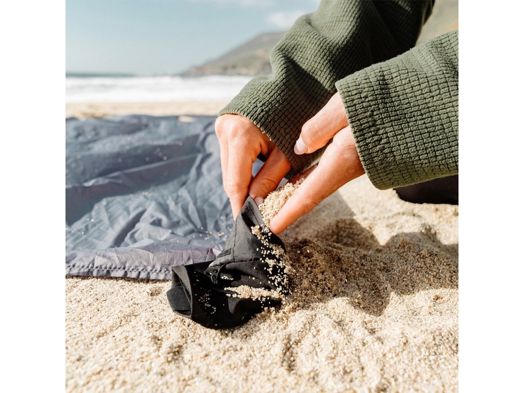 - vrecká na každom rohu je možné naplniť pieskom alebo kameňmi, aby deka držala na povrchu, kde nie je možné použiť háčiky (pláž)