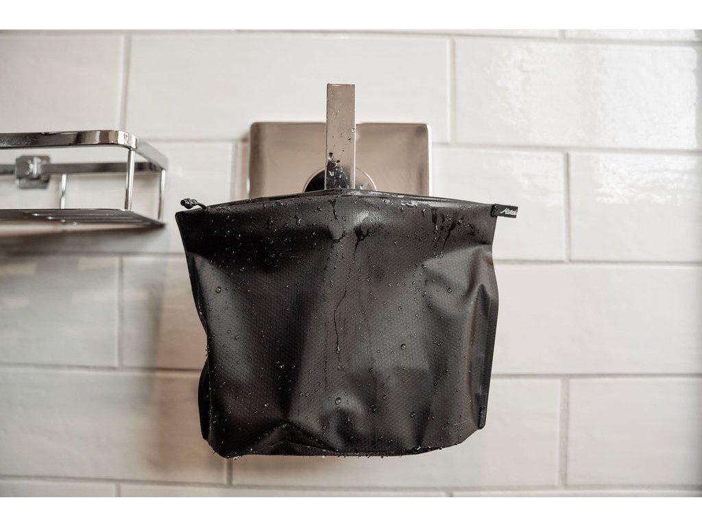 Vodotesný materiál umožňuje vode vypariť sa cez látku, takže vnútri puzdra vyschnú zubné kefky aj holiace strojčeky.