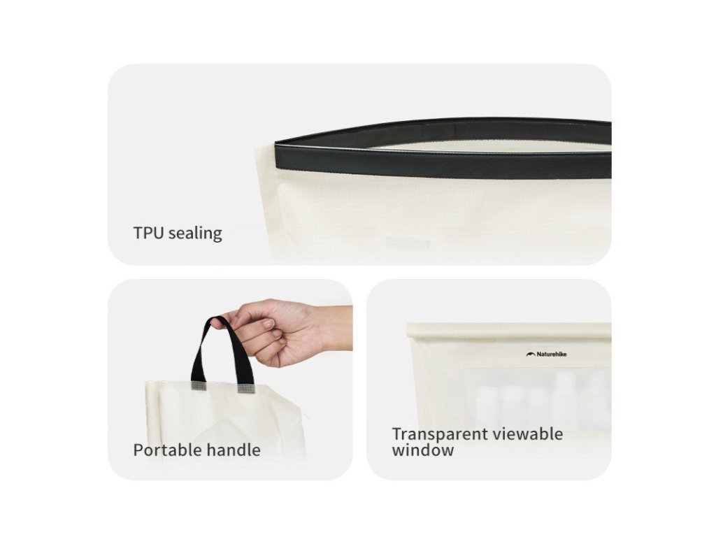 Naturehike myslel na všetko – dostatok priestoru, jednoduché uzatváranie aj ľahké prenášanie. Taštička je navrhnutá v čistom, funkčnom štýle a je dostupná v dvoch elegantných farbách: čiernej a bielej. Jej unisex dizajn ocenia ženy aj muži, či už idú na pracovnú cestu, do kempu alebo na víkend k priateľom.