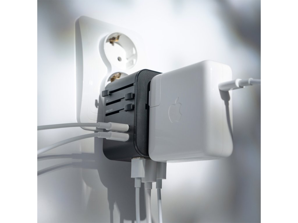Vďaka celkovo šiestim výstupným portom, vrátane výkonného USB-C PD35 portu, ktorý zvládne rýchle nabíjanie aj väčších zariadení ako sú notebooky či moderné smartfóny, vám už nebude chýbať žiadny konektor. Adaptér je vybavený dvoma USB-C, tromi klasickými USB-A portmi a jedným viacnásobným AC výstupom. Vďaka inteligentnej technológii detekcie napätia sa automaticky prispôsobí vášmu zariadeniu a zaistí bezpečné nabíjanie bez rizika prepätia.