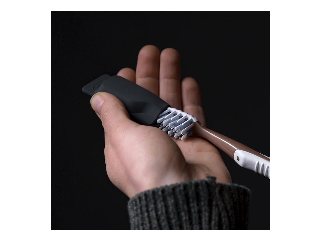 Krytky na zubnú kefku sa ľahko nasúvajú, ale zároveň pevne držia na svojom mieste. Spodný otvor zostáva uzavretý a pevne sa drží na vrchnej časti kefky.