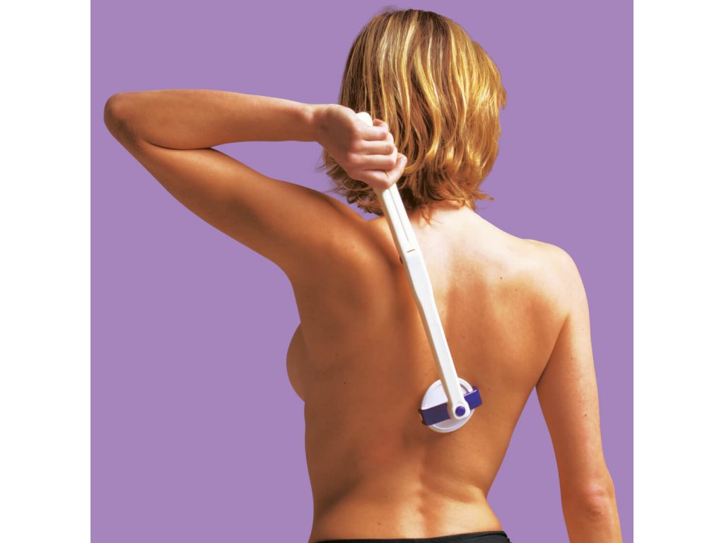 - Zakrivený masážny valček: Ideálny na aplikáciu kozmetických, lekárskych a opaľovacích mliek na chrbát.