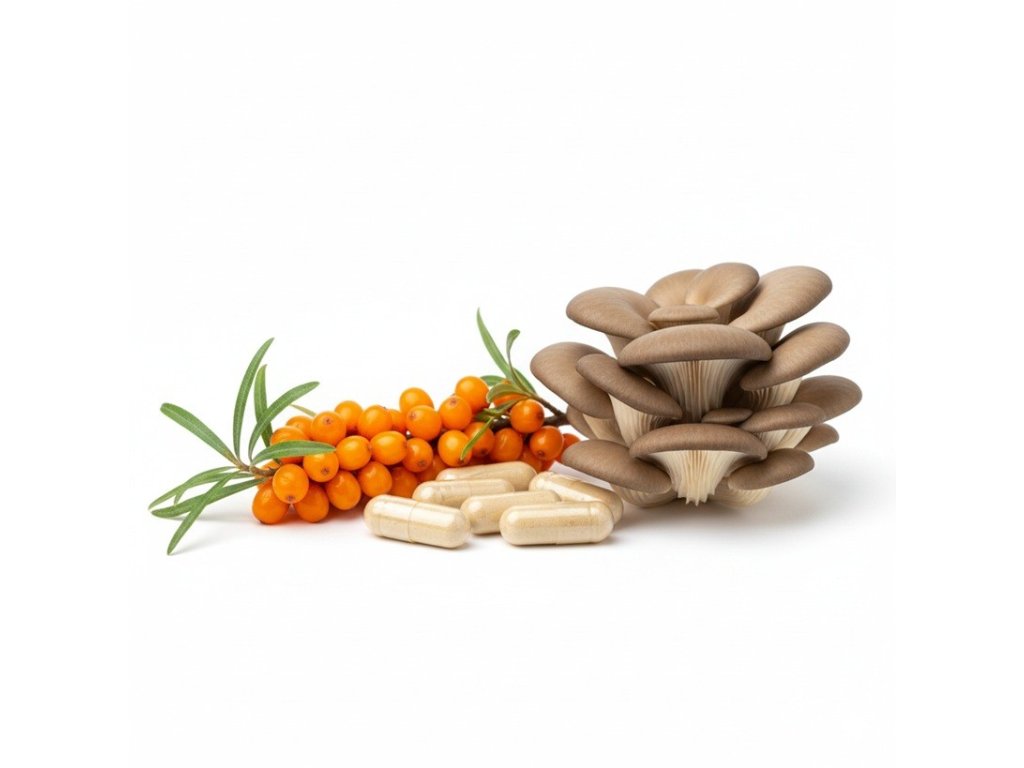 Zloženie 1 kapsula: | extrakt z hlivy ustricovej (Pleurotus ostreatus) 200 mg, bio extrakt z plodu rakytníka tibetského (Hippophae tibetana) 100 mg, b |