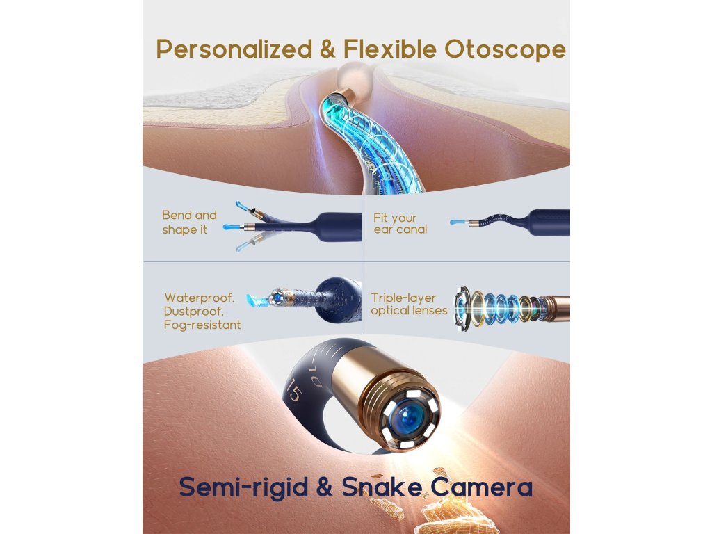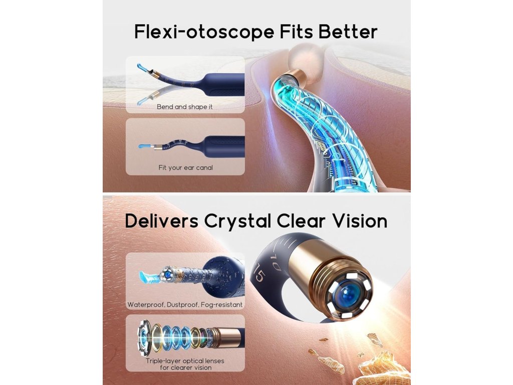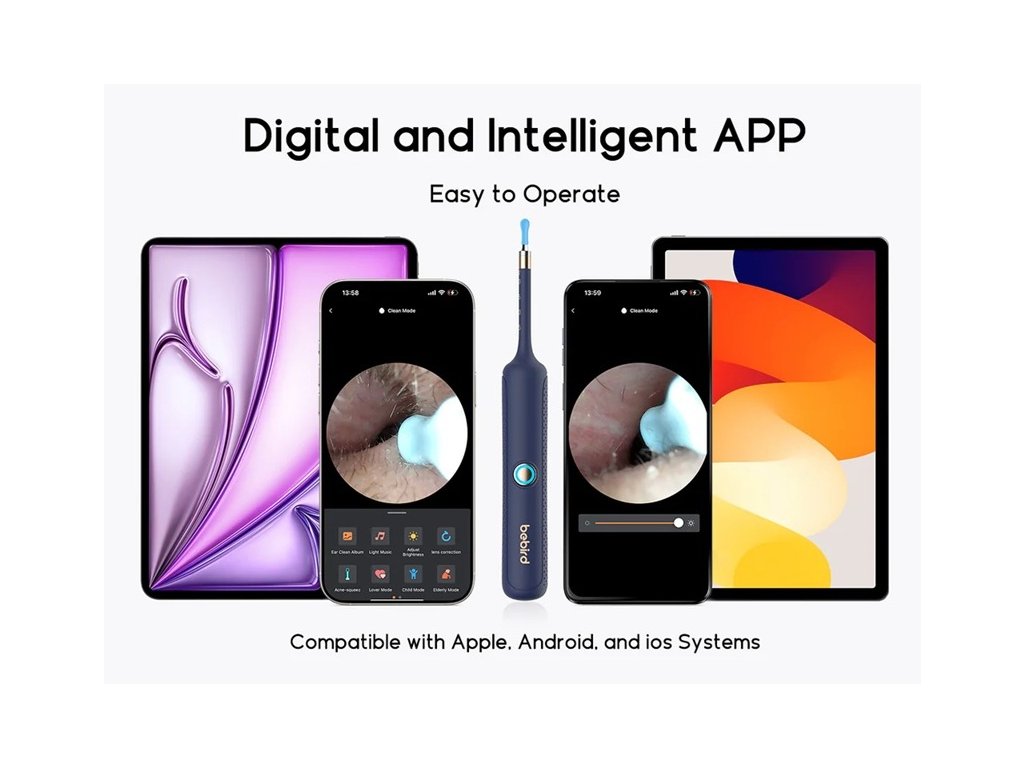 Predstavujeme Bebird Ear-care – moderný digitálny otoskop s kamerou, ktorý premení bežnú hygienu uší na pohodlný a bezpečný rituál. Ohybná a flexibilná konštrukcia sa ľahko prispôsobí prirodzeným krivkám zvukovodu, takže sa pohodlne dostanete aj do ťažšie prístupných miest. Vďaka HD kamere s ochranou proti vode, prachu a zahmlievaniu získate ostrý a detailný obraz, ktorý si zobrazíte priamo na svojom mobilnom zariadení. Stačí prepojiť Bebird cez Wi-Fi s telefónom či tabletom a stiahnuť si bezplatnú intuitívnu aplikáciu – a hneď môžete sledovať celý proces v reálnom čase.