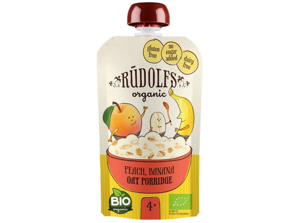 Rudolfs BIO vrecko Broskyňa, banán, celozrnná ovsená kaša 110 g od 4 mesiacov