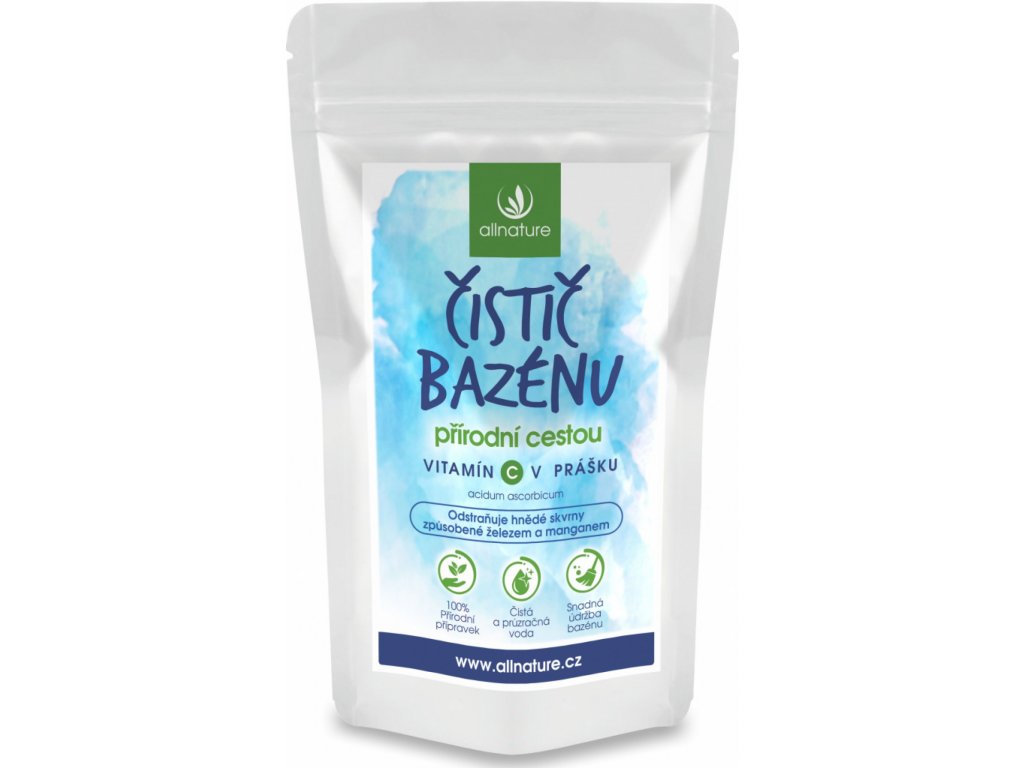 Allnature Čistič bazéna odstraňuje hnedé škvrny spôsobené železom a mangánom prírodnou cestou. Je 100% prírodný, vhodný na jednoduchú údržbu bazéna a zaručuje čistú a priezračnú vodu. Nenahradzuje chlór, slúži na jednorazové vyčistenie bazéna od usadenín.