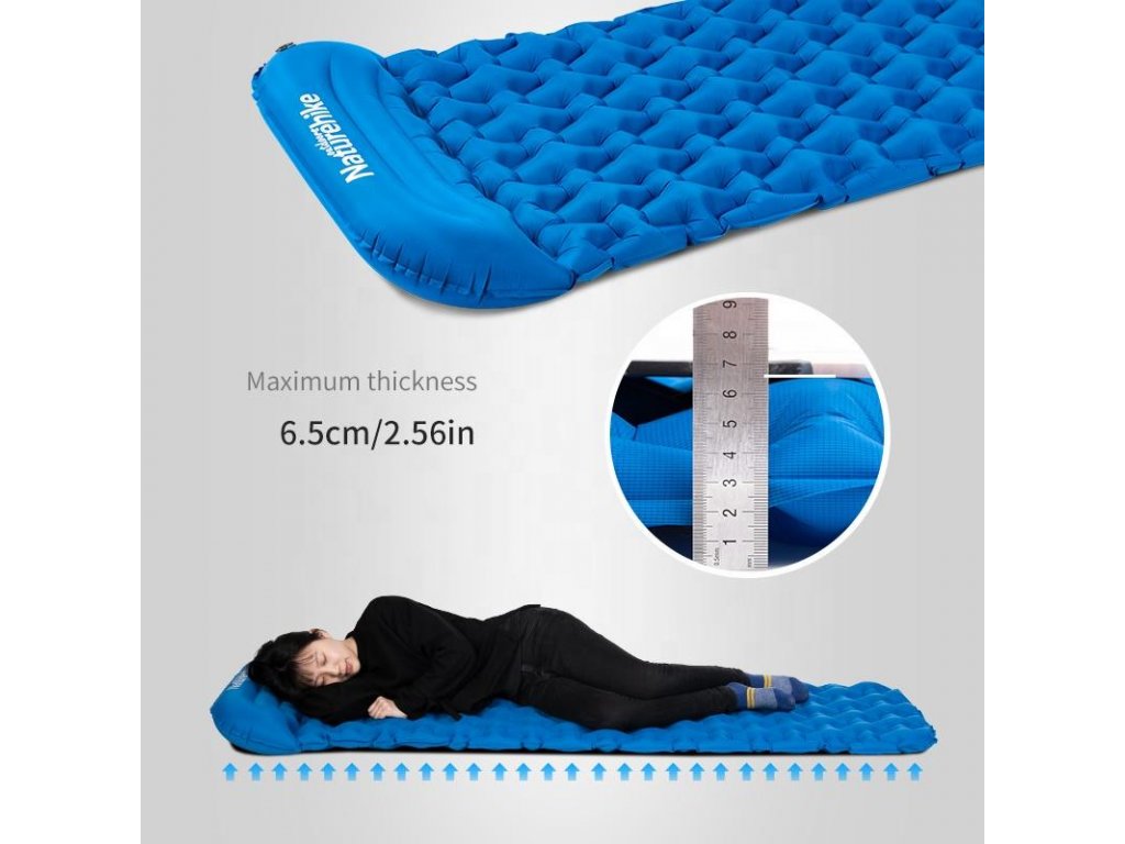 Nafukovacia karimatka Naturehike FC-12 je komfortná nafukovacia karimatka so zabudovaným vankúšom pod hlavu. Je to ideálny doplnok pre vaše dobrodružstvo v prírode. Zložená karimatka nepresiahne rozmery 30x10 cm a pre použitie ju jednoducho stačí napustiť vzduchom. Nafúknutá karimatka má výšku 6,5 cm, dĺžku 195 cm a šírku 59cm. Doprajte si kvalitný spánok kdekoľvek uznáte za vhodné. Materiál karimatky je odolný proti mechanickému poškodeniu alebo prepichnutiu.