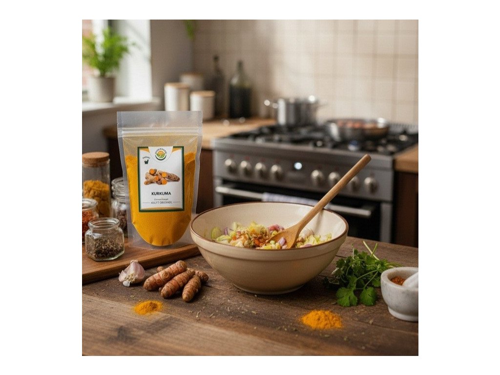 Kurkuma patrí medzi najuniverzálnejšie koreniny sveta. Jej zlatožltá farba a jemne zemitá, mierne horkastá chuť s nádychom rasce dokážu premeniť aj obyčajné jedlo na kulinársky zážitok. Skvele sa hodí k strukovinám, vajíčkam, hydine, rybám, ryži či do polievok. Môžete ju pridať aj do teplých nápojov alebo smoothie na posilnenie imunity. Kurkuma je hlavnou zložkou kari zmesí, ktorým dodáva ich typický odtieň aj arómu.