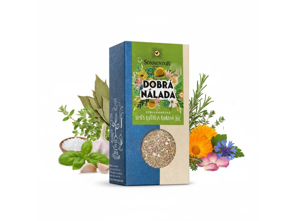 Nechajte sa uniesť na vlne preslnenej atmosféry Stredomoria. Bio koreniaca zmes Dobrá nálada spája chuť cesnaku, póru, bazalky, rozmarínu a dobromyseľ – byliniek, ktoré okamžite vyvolajú spomienku na letné večery pri mori, na rozkvitnuté záhrady a vôňu čerstvo pripraveného jedla. Jej ľahko slaná, pikantne aromatická chuť v sebe skrýva harmonickú kombináciu tepla, sviežosti a bylinkového bohatstva, ktorá dokáže prebudiť dobrú náladu v každej kuchyni aj pri každom stole.