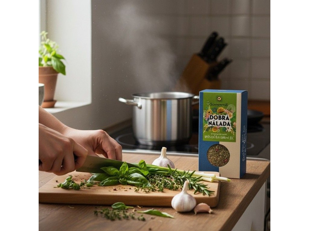 Táto zmes prináša do kuchyne esenciu stredomorského leta, či už ju použijete v talianskej, slovenskej alebo kreatívnej domácej kuchyni. Vôňa cesnaku, byliniek a kvetov sa po zmiešaní s teplým jedlom naplno rozvinie a dodá mu chuť, ktorá vás prenesie na pobrežie jazera Garda alebo do toskánskych viníc. Či pripravujete rýchlu večeru alebo slávnostný obed, Dobrá nálada je korenie, ktoré vnesie do každého jedla radosť, harmóniu a kúsok slnka.