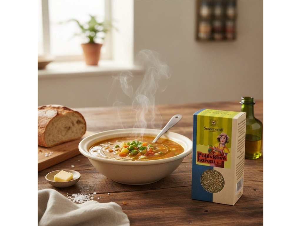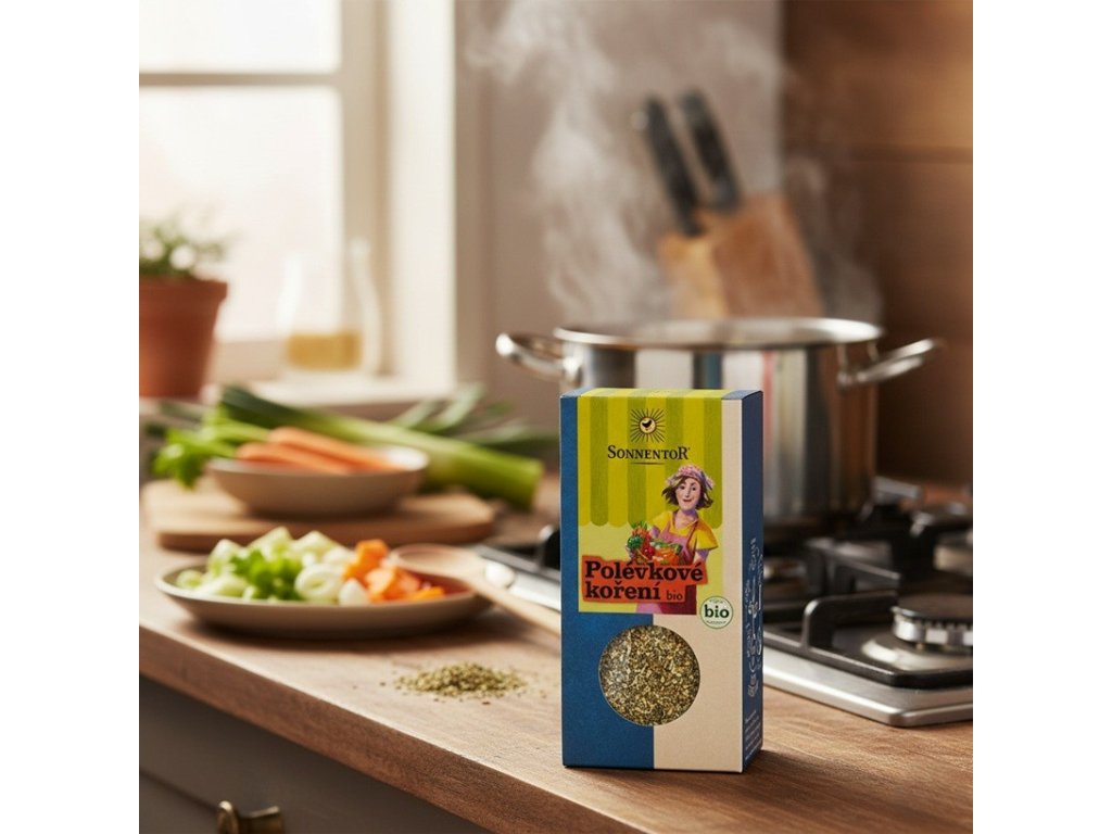 Vôňa domova často začína v kuchyni – a najmä pri tanieri horúcej polievky. Bio polievkové korenie od Sonnentoru je zmes, ktorá dokáže aj z obyčajného vývaru alebo zeleninovej polievky vytvoriť dokonalý zážitok. Jeho chuť je jemne nasladnutá, bylinková a ligurčeková – presne taká, akú si pamätáme z detstva. Kombinácia petržlenu, mrkvy, majoránu, ligurčeka a paštrnáku v sebe spája to najlepšie z tradičnej kuchyne a dodáva každému sústu harmóniu aj hĺbku.
