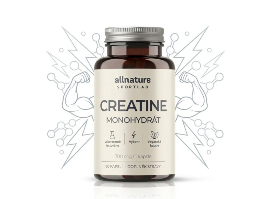 Allnature Sportlab Creatine monohydrát 90 cps je doplnok výživy s obsahom kreatín monohydrátu vo forme kapsúl. Je určený pre športovcov a aktívnych jednotlivcov, ktorí chcú dopĺňať kreatín bez prípravy nápoja. Vďaka rastlinnej kapsule je vhodný aj pre vegetariánov. Balenie obsahuje 90 kapsúl.