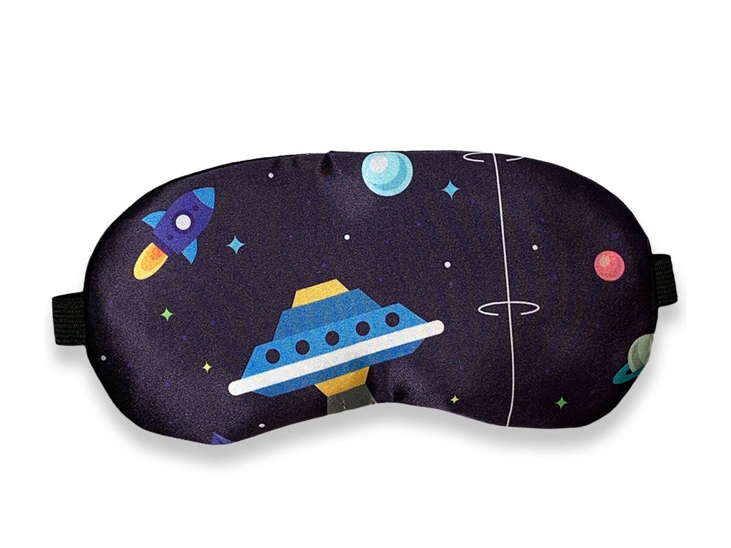 Farebná maska na oči na spanie s motívom vesmírnej lode. Pohodlná, príjemná na tvár a chráni oči pred svetlom. Maska má zároveň zábavnú funkciu pre deti.