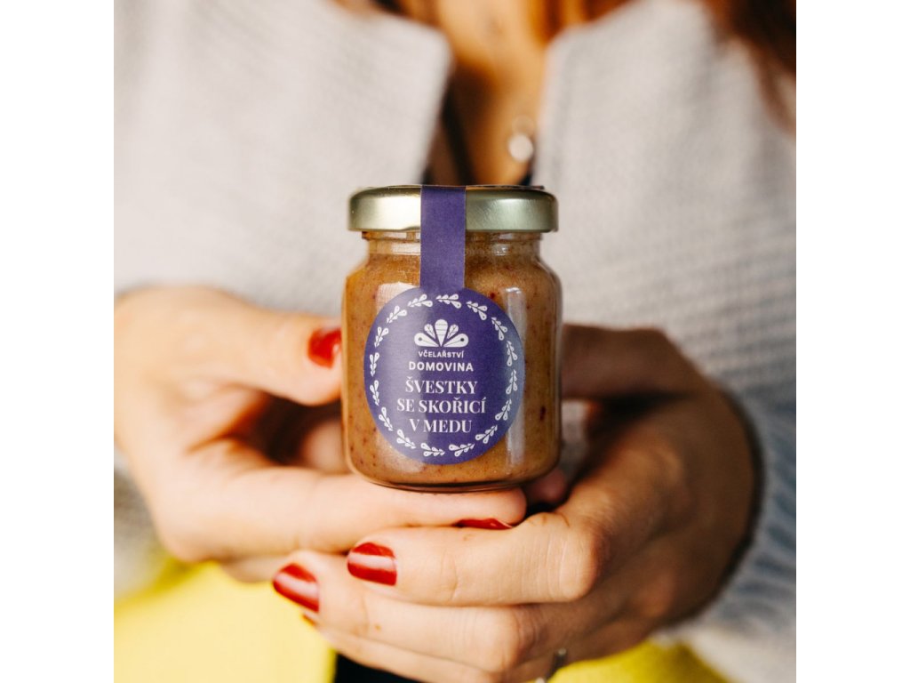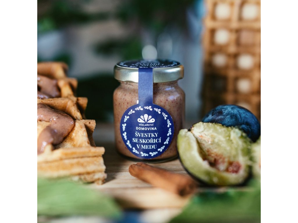 Včelařství Domovina Med so slivkami a škoricou 75 g kvetový med s lyofilizovaným ovocím