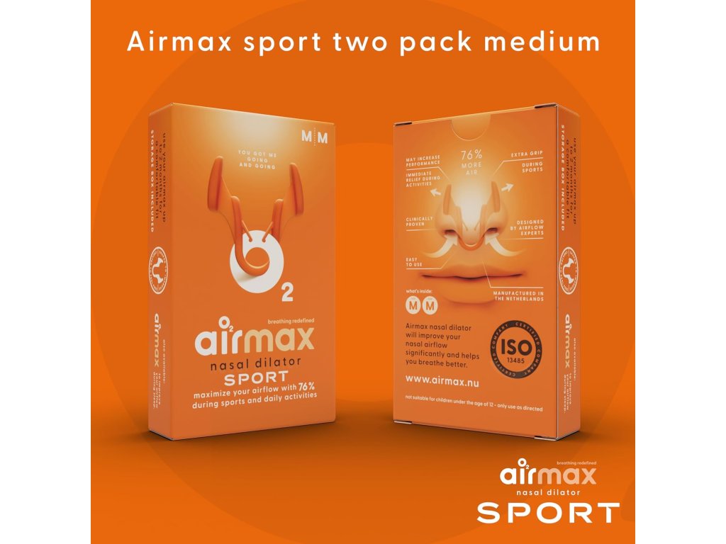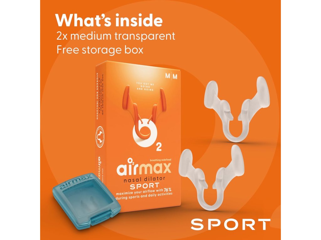 Airmax Sport je špeciálny nosový dilatátor, ktorý jemne rozširuje užšie časti nosových priechodov. Tým dochádza k výraznému zlepšeniu prúdenia vzduchu nosom a zároveň sa uľahčuje samotné dýchanie. Podľa nezávislých štúdií môže Airmax zvýšiť priepustnosť vzduchu až o 76 %, čo znamená, že do pľúc sa dostane viac kyslíka. To prináša významné výhody nielen pre športovcov, ale aj pre bežných používateľov, ktorí chcú počas pohybu lepšie dýchať. Oproti klasickej verzii Airmax Classic má verzia Sport špeciálne úchyty, ktoré zabraňujú vypadnutiu dilatátora z nosa aj počas aktivity.