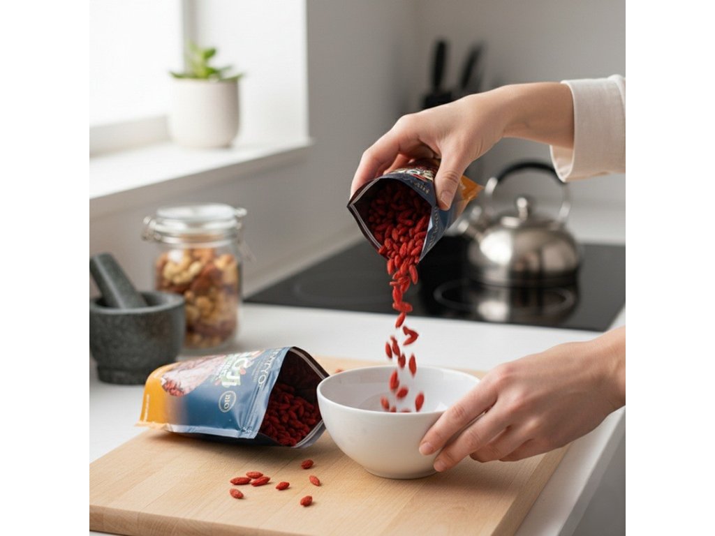 Goji Premium je nielen zdravé, ale aj veľmi všestranné. Sušené plody možno konzumovať samostatne ako rýchlu a chutnú desiatu, pridať ich do raňajkových zmesí, smoothie, jogurtu či šalátov alebo ich použiť pri pečení. Ich prirodzená sladkosť obohatí každé jedlo a zároveň poskytne vášmu telu cenné živiny. Ak hľadáte jednoduchý a chutný spôsob, ako podporiť svoju vitalitu a dlhovekosť, tibetské goji je tou správnou voľbou.