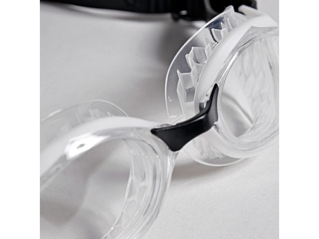 Špeciálne Air Seals sa prirodzene prispôsobia vašej tvári, takže okuliare poskytujú super ľahký pocit a zároveň účinne redukujú nepríjemné otlaky okolo očí. Vďaka delenému nastaviteľnému pásiku perfektne držia na svojom mieste aj pri dynamickom plávaní a sú pohodlné aj pre plavcov s dlhými vlasmi. K dispozícii sú tiež tri vymeniteľné nosníky, aby okuliare sadli každému.