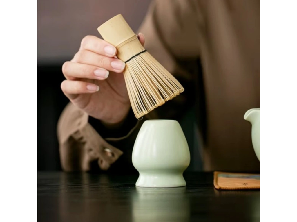 Keramický stojanček je určený na odkladanie matcha metličky chasen po použití. Pomáha metličke udržať prirodzený tvar, chráni jemné štetinky pred deformáciou a podporuje správne preschnutie. Vďaka stabilnému keramickému prevedeniu pevne drží na mieste a hodí sa na každodenný matcha rituál doma aj v práci.