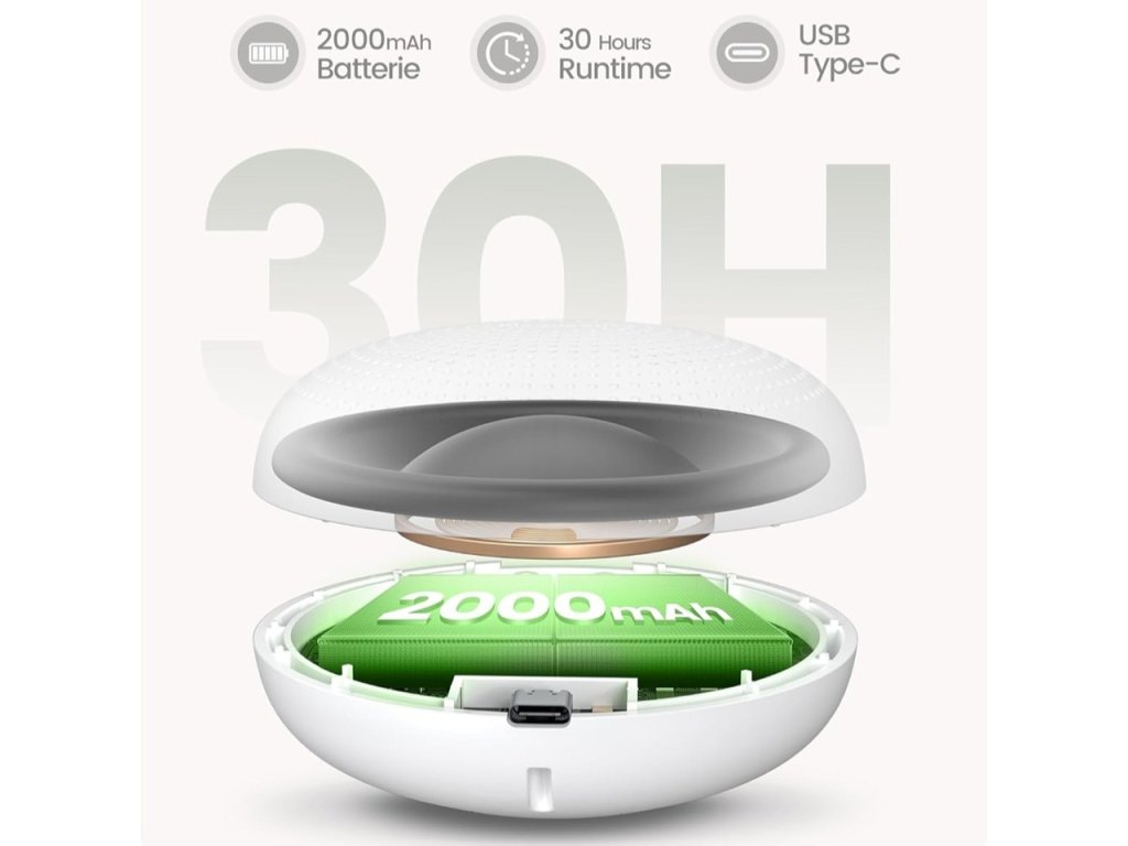S Glocusent Prenosnou zvukovou mašinkou sa vaša cesta stáva pokojnejšou a príjemnejšou. Kompaktný dizajn s odnímateľným remienkom uľahčuje prenášanie a upevnenie na kočík či postieľku. Vďaka 62 starostlivo vybraným zvukom, ako sú upokojujúce šumy oceánu alebo spev vtákov, pomáha dieťaťu udržať emocionálnu stabilitu aj pri zmene prostredia. 30 hodín prevádzky na jedno nabitie zabezpečuje, že budete mať vždy po ruke známe a upokojujúce zvuky pre pokojný spánok, či už ste doma alebo na cestách. V balení nájdete prístroj, nabíjací kábel (USB-C), prídavný remienok.