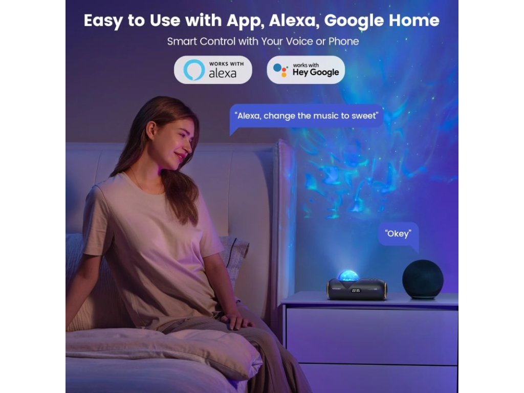 Toto zariadenie 5v1 ťa očarí nielen funkciami, ale aj intuitívnym ovládaním. Všetko zvládneš cez aplikáciu, hlasových asistentov alebo Bluetooth. Súčasťou je jemné nočné svetlo aj praktické hodiny. V balení nájdeš projektor, nastaviteľný stojan, napájací adaptér s káblom a používateľský manuál.