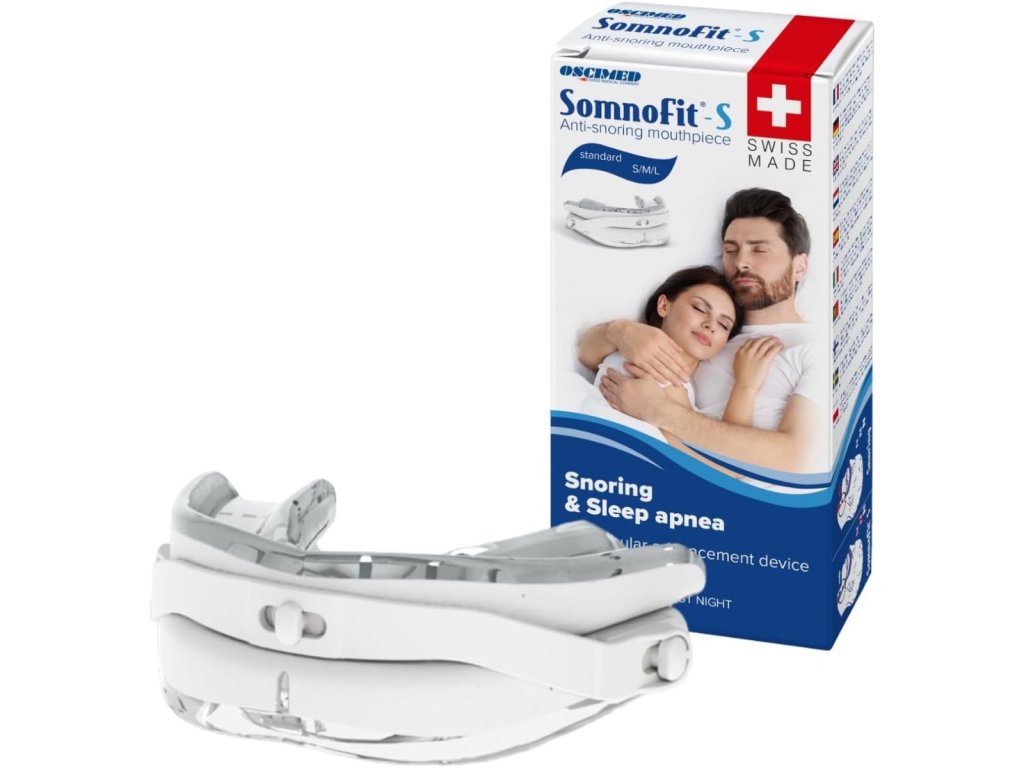 Somnofit - S pomôcka proti chrápaniu a spánkovému apnoe sa skladá z dvoch čeľustných dielov, ktoré sa uchytia na hornú a dolnú čeľusť. Pomocou uchytávacích pásikov drží čeľusť zatvorenú a zároveň tlačí dolnú čeľusť dopredu o niekoľko milimetrov. Tým zabraňuje chrápaniu s otvorenými ústami a uvoľňuje dýchacie cesty. Vďaka tomu redukuje alebo aj úplne eliminuje chrápanie. V balení si jednoducho vytvoríte vlastný odtlačok čeľuste, ktorý následne vložíte do úst a pomocou pásikov čeľusť fixujete.