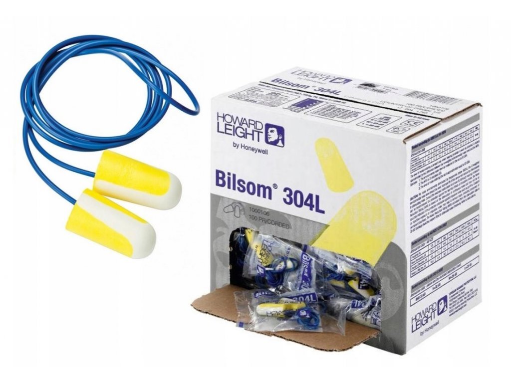Jednorazové protihlukové štuple šnúrkou Bilsom 304. Tvarované z polyuretánovej peny s hladkým povrchom a zaobleným kužeľovitým tvarom, bez PVC, vďaka čomu poskytujú dlhotrvajúci komfort. Určené na použitie na pracoviskách s veľmi vysokým hlukom. Tieto štuple poskytujú vysokú úroveň tlmenia a zároveň pohodlie pri používaní. Vyznačujú sa jasnou farbou a kužeľovitým tvarom, ktorý zabraňuje zasunutiu štuple príliš hlboko do ucha. Zodpovedá norme: EN 352-2:2002. Štuple sú ponúkané v dvoch veľkostiach: S a L. Veľkosť L zodpovedá klasickej veľkosti štuplov do uší. Veľkosť S je menšia, vhodná pre ľudí s menším ušným kanálikom (ženy, deti). štuply poskytujú ochranu 33 SNR, majú spojovaciu šnúrku.