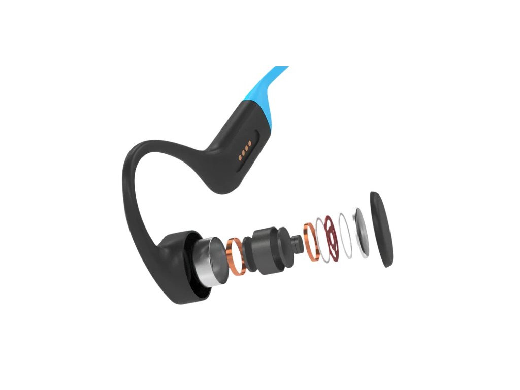 Nová verzia slúchadiel poskytuje vyššiu odolnosť voči vode. V balení nájdete praktické puzdro, do ktorého možno slúchadlá uložiť. Vďaka technológii Bone Conduction nemáte slúchadlá v ušiach, a tak sú vaše uši voľné a pri používaní môžete naďalej počúvať aj svoje okolie.