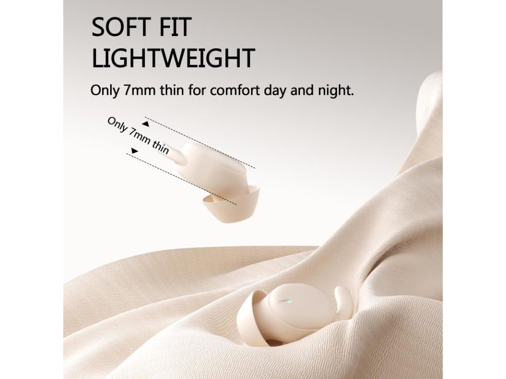 Sleep Buds majú vodoodolnosť IPX6, takže odolajú potu aj jemnému dažďu – ideálna voľba nielen do postele, ale aj na šport, cesty či relax v prírode. Kombinácia praktických funkcií, pohodlného dizajnu a vysokej kvality zvuku robí z týchto slúchadiel perfektného spoločníka pre každého, kto si cení pokojný spánok, čistý zvuk a slobodu bez káblov.