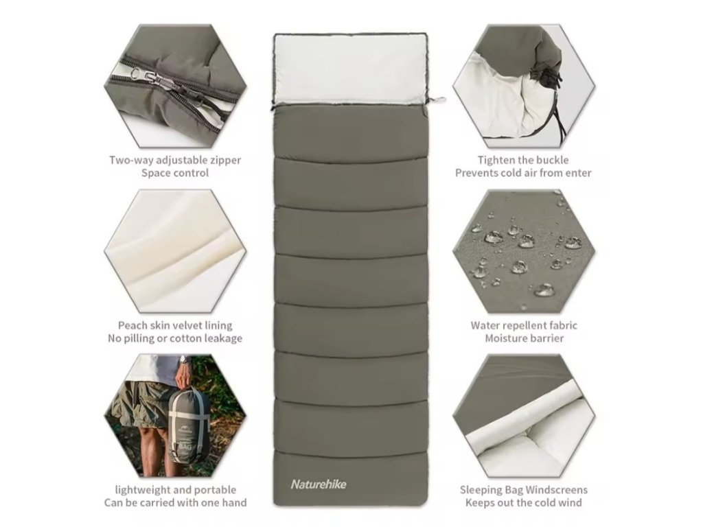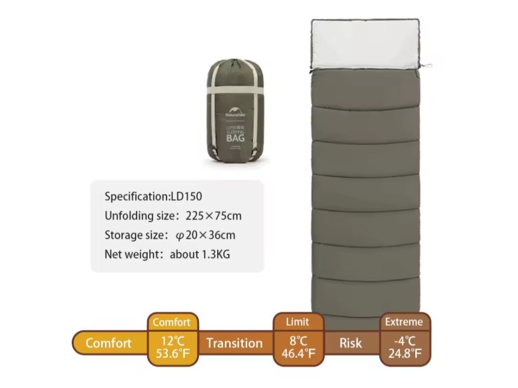 Naturehike LD150 je spacák navrhnutý pre všetkých, ktorí hľadajú pohodlie, jednoduchosť a dobrú zbaliteľnosť počas letných výprav. Či už sa chystáte pod stan, na víkend na chatu alebo na festival, s LD150 máte istotu pokojného spánku bez zbytočnej záťaže. Spacák váži 1,3 kg, čo z neho robí ľahkú, ale odolnú voľbu pre teplejšie obdobie roka.