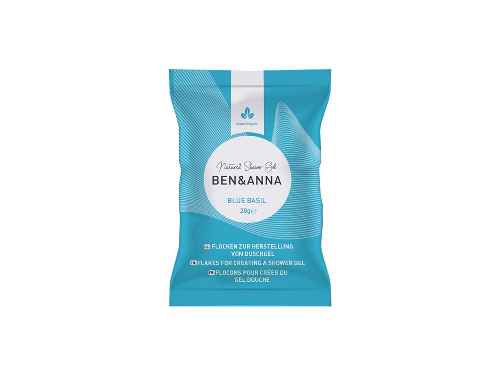 Ben & Anna Sprchový gél v prášku - Blue Basil 2×20 g s vôňou eukalyptu