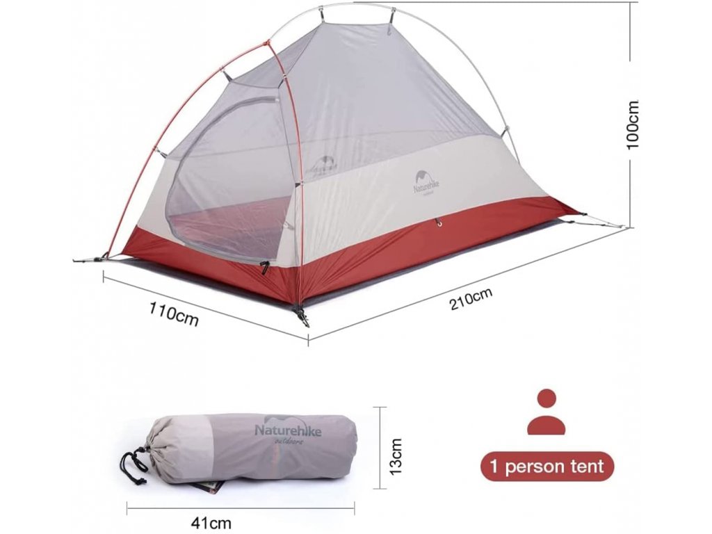 Ultraľahký trojsezónny turistický stan Cloud Up pre jednu osobu od spoločnosti Naturehike ponúka priestranné a pohodlné ubytovanie v ultraľahkom prevedení. Cloud Up 1 210T váži iba 1852g (vrátane vybavenia a podlahy). Samotná podlaha váži 204g. Materiál stanu 210T nylon. Príslušenstvo Duraflex. Vnútorný materiál stanu 210T anti-tear polyester + prodyšná síťovina B3. Materiál dna stanu: 150D oxfordská tkanina anti-tear.