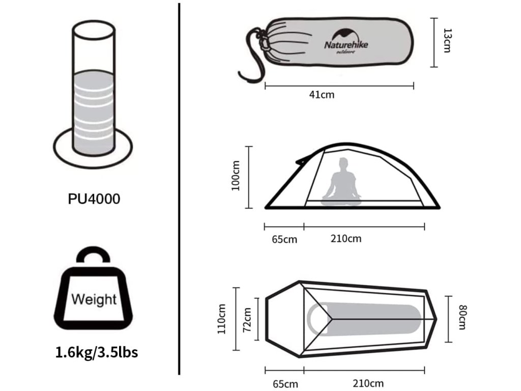 Vyrobený z odolného nylonového materiálu 210T so silikónovou úpravou nepremokavosti PU 3000 mm. Cloud up 1 je dostatočne dobrý, aby vyhovel vašim potrebám na rekreačné kempovanie a ochranu pred dažďom.