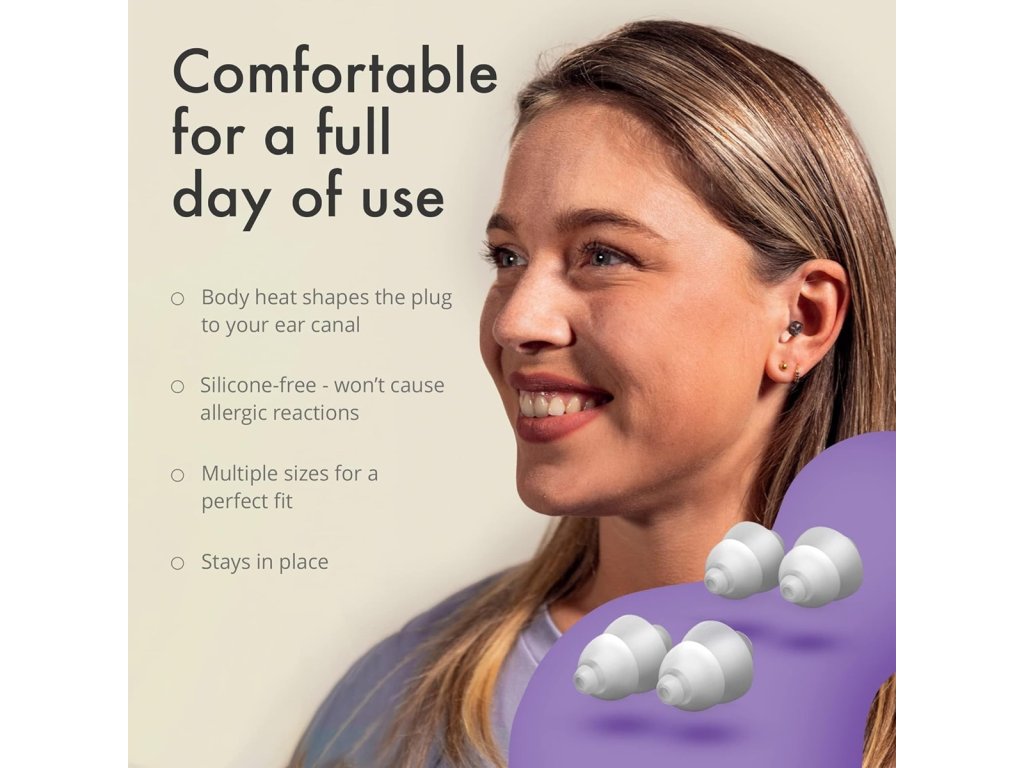 ClearTone sú vyrobené z hypoalergénneho materiálu ThermoShape™, ktorý sa vďaka telesnému teplu prispôsobí tvaru vášho zvukovodu. Vďaka tomu zostávajú bezpečne na mieste po celý deň a nespôsobujú tlak ani nepohodlie. Sú umývateľné, znovupoužiteľné a vďaka ergonomickému tvaru ich ani pri dlhom nosení takmer nepocítite – ideálna voľba pre tých, ktorí potrebujú ochranu sluchu počas celého dňa.