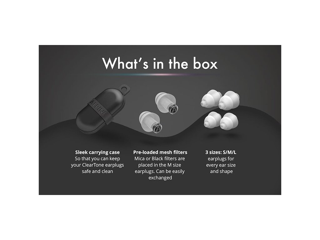 Špeciálny sieťkový filter v Alpine ClearTone redukuje hlasné frekvencie a zároveň zachováva prirodzený zážitok z hudby aj konverzácie. Na rozdiel od obyčajných špuntov neskresľujú tóninu ani nepridávajú basy, takže si užijete čistý a vyrovnaný posluch. Vďaka tomu sú ideálne na koncerty a festivaly, kde chcete počuť hudbu v tej najlepšej kvalite a zároveň si chrániť sluch pred nadmerným hlukom.