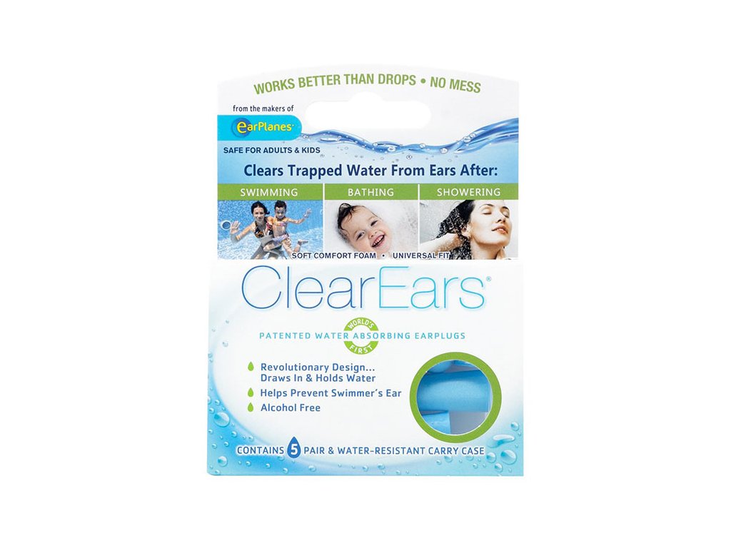 ClearEars® sú revolučné štuple do uší, ktoré absorbujú vodu v ušiach po plávaní, kúpaní či sprchovaní. Uviaznutá voda môže byť veľmi nepríjemná a môže viesť k problémom, napr. k zápalu uší.