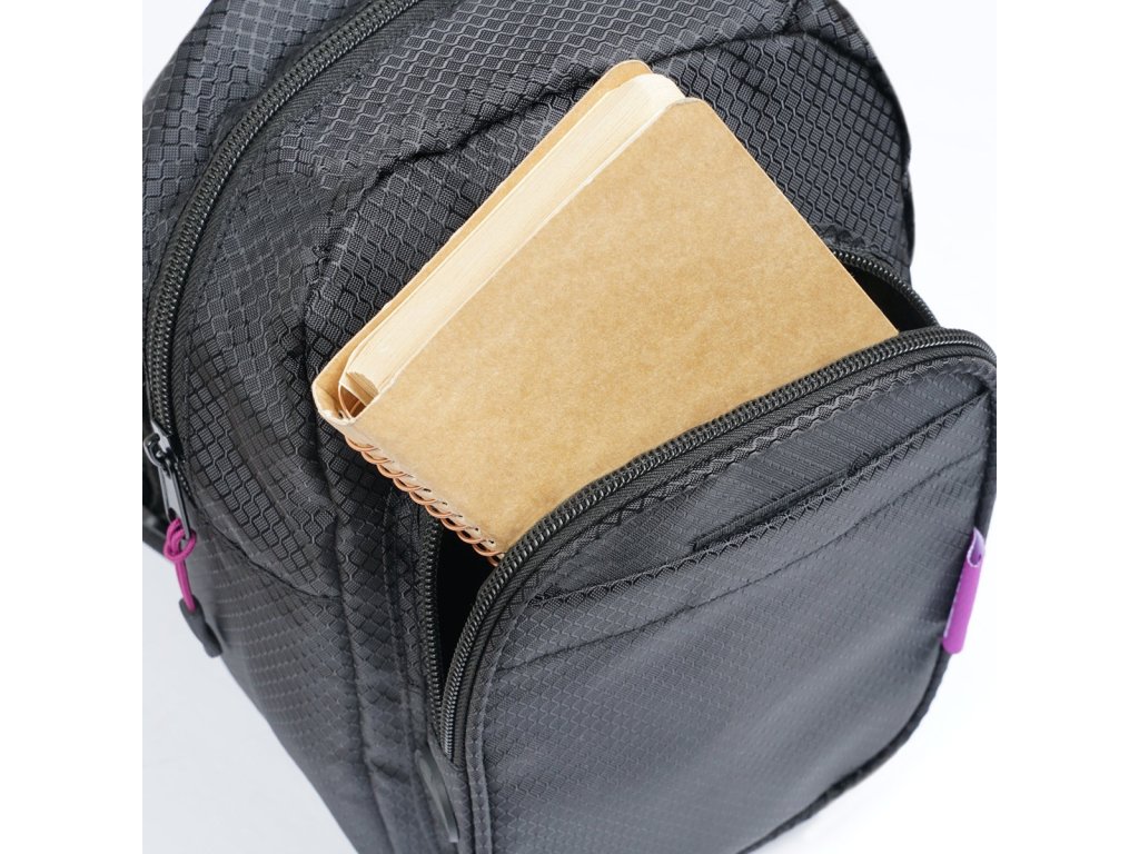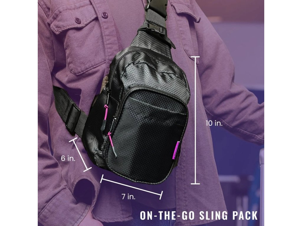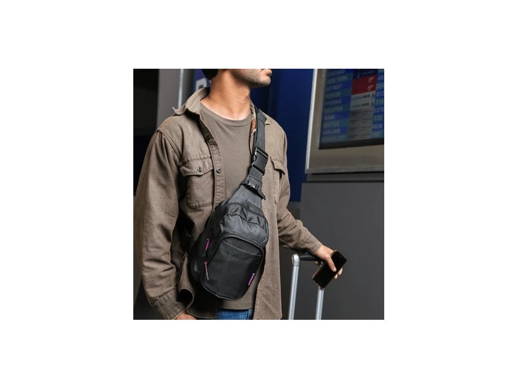 On-The-Go Sling Pack je ideálnou voľbou pre všetkých, ktorí hľadajú štýlovú, funkčnú a zároveň bezpečnú tašku na cesty. Tento kompaktný sling pack ponúka premyslený dizajn, do ktorého si ľahko uložíte svoje osobné veci, cestovné doklady aj elektroniku. Vďaka šikovnému systému vreciek budete mať všetko prehľadne usporiadané a vždy po ruke – či už sa presúvate po meste, cestujete lietadlom alebo vyrážate na víkendový výlet.