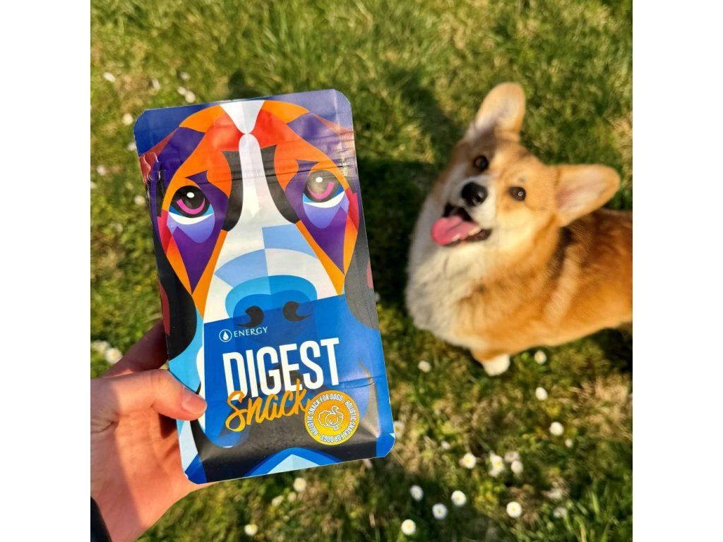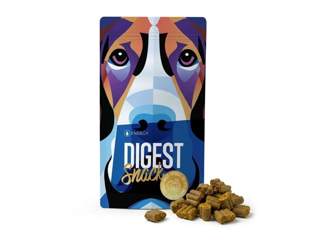 Energy DIGEST SNACK sú založené na morčacom mäse a živočíšnych zložkách z pečene a srdca, vďaka čomu sú maškrty atraktívne aj pri výcviku. Na doplnenie jedálnička obsahujú mrkvu, jablko, červenú repu a banán. Receptúra je doplnená o kokosovú múku, strúhaný kokos a sušené vajcia. Na podporu črevnej rovnováhy obsahuje čiastočne delaktózovanú srvátku s prebiotikami. Bylinná zložka zahŕňa harmanček, pestrec mariánsky, púpavu, zeler, kurkumu a žihľavu, takže maškrta zapadá do prirodzene ladenej starostlivosti o trávenie.