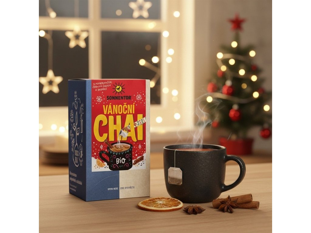 Když se venku ochladí a vzduchem se začne linout vůně skořice, pomerančů a kakaa, nastává ideální chvíle pro šálek Sonnentor Chai Vánoční. Tento aromatizovaný bylinný čaj s kořením v bio kvalitě v sobě spojuje to nejlepší z tradičního černého čaje, vybraných orientálních koření a šťavnatých kousků pomeranče. Jeho kakaově nasládlá a lehce kořeněná chuť přináší pocit útulnosti, radosti a klidu – přesně to, co k Vánocům patří.
