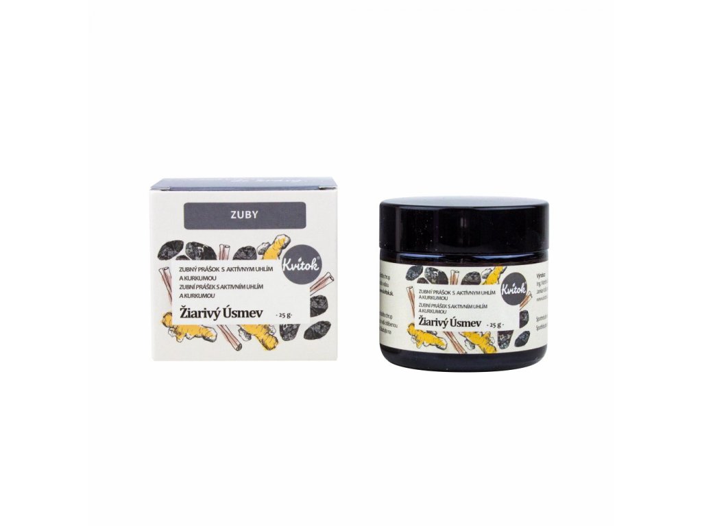 Kvitok Zubný prášok Žiarivý úsmev (25 g) s aktívnym uhlím